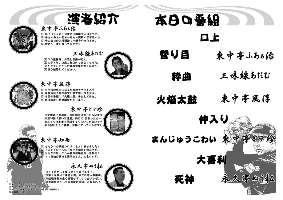 黒い三連星初の秋公演。ゲストには久々に、三味線漫談のあだむさんに参加してもらいました。お客さんにもたくさん来て頂いて盛況でした。
